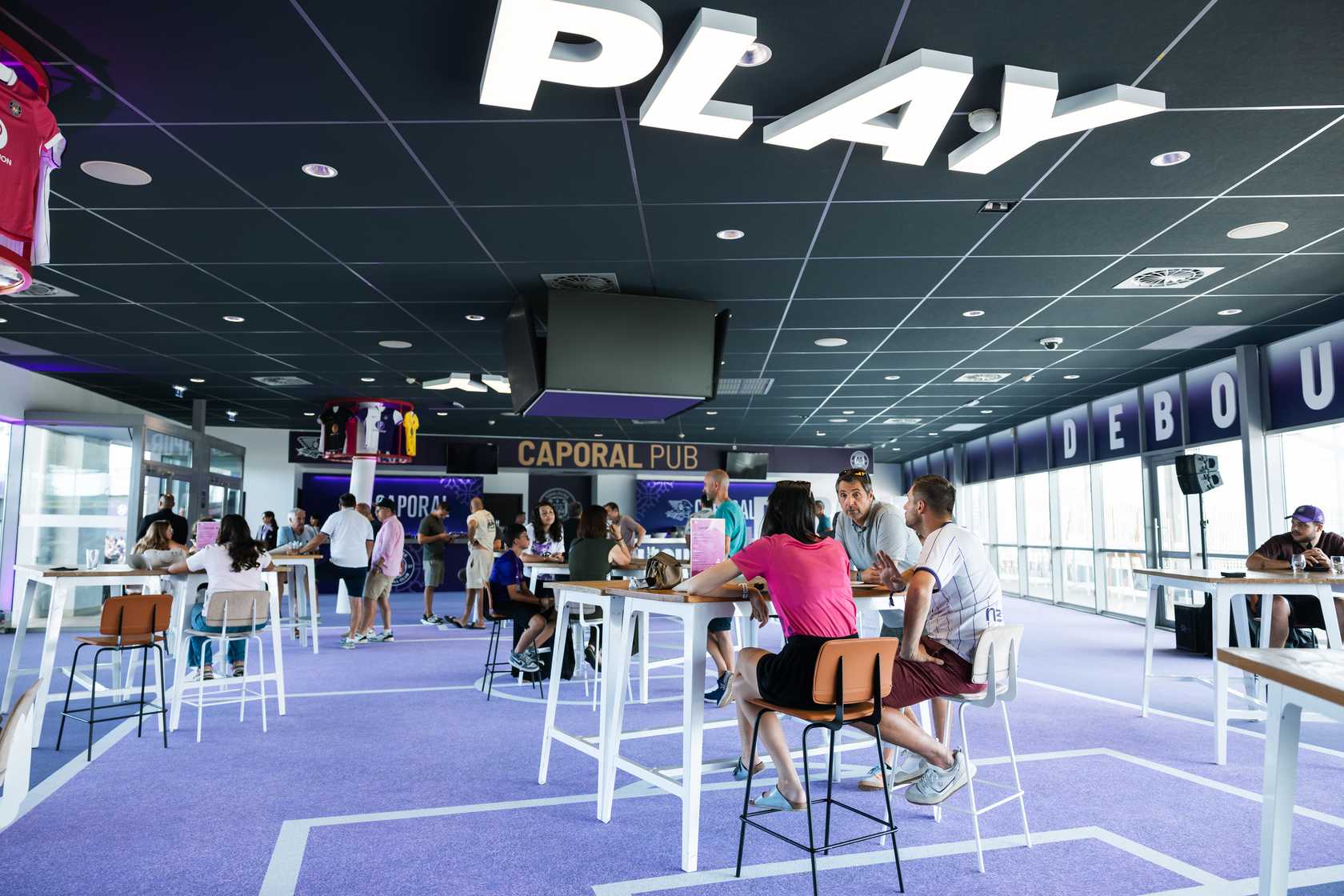 Bienvenue en Caporal Pub, l'espace pour vivre passionnément les rencontres du TéFéCé dans une véritable ambiance sports bar. Dans un univers refait à neuf, profitez d'un open bar (bière & soft) et d'une prestation streetfood en avant-match et fin de match. Accédez à vos places en Honneur Sud Latéral depuis votre espace et vivez la rencontre des Violets intensément au plus près du Virage Brice Taton. Retrouvez votre salon pour un après-match animé par un DJ.